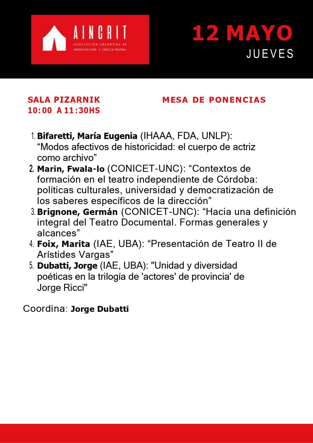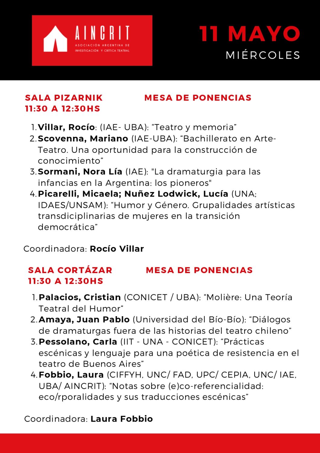 Sala Pizarnik 10:00 a 11.30hs MESA DE PONENCIAS