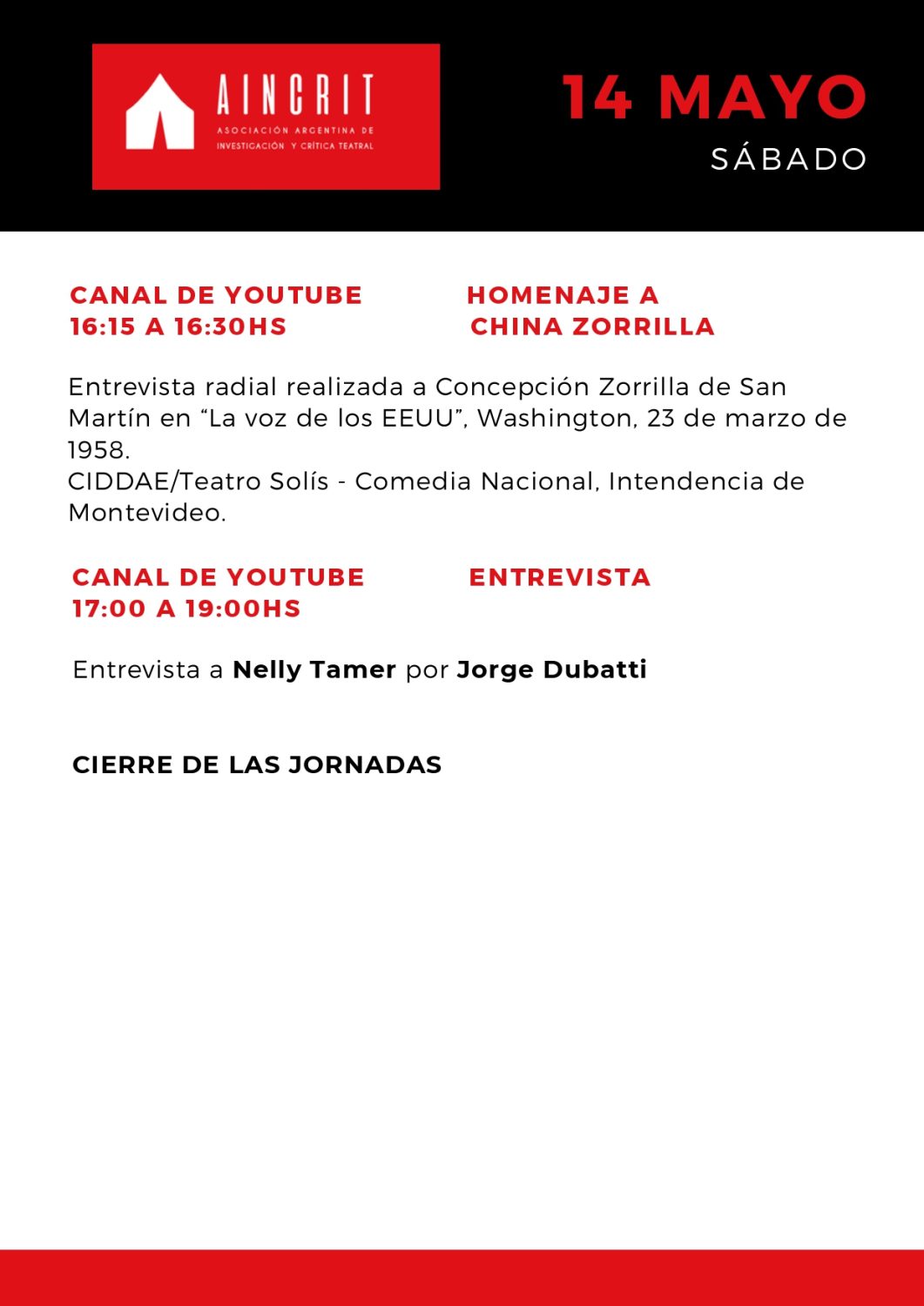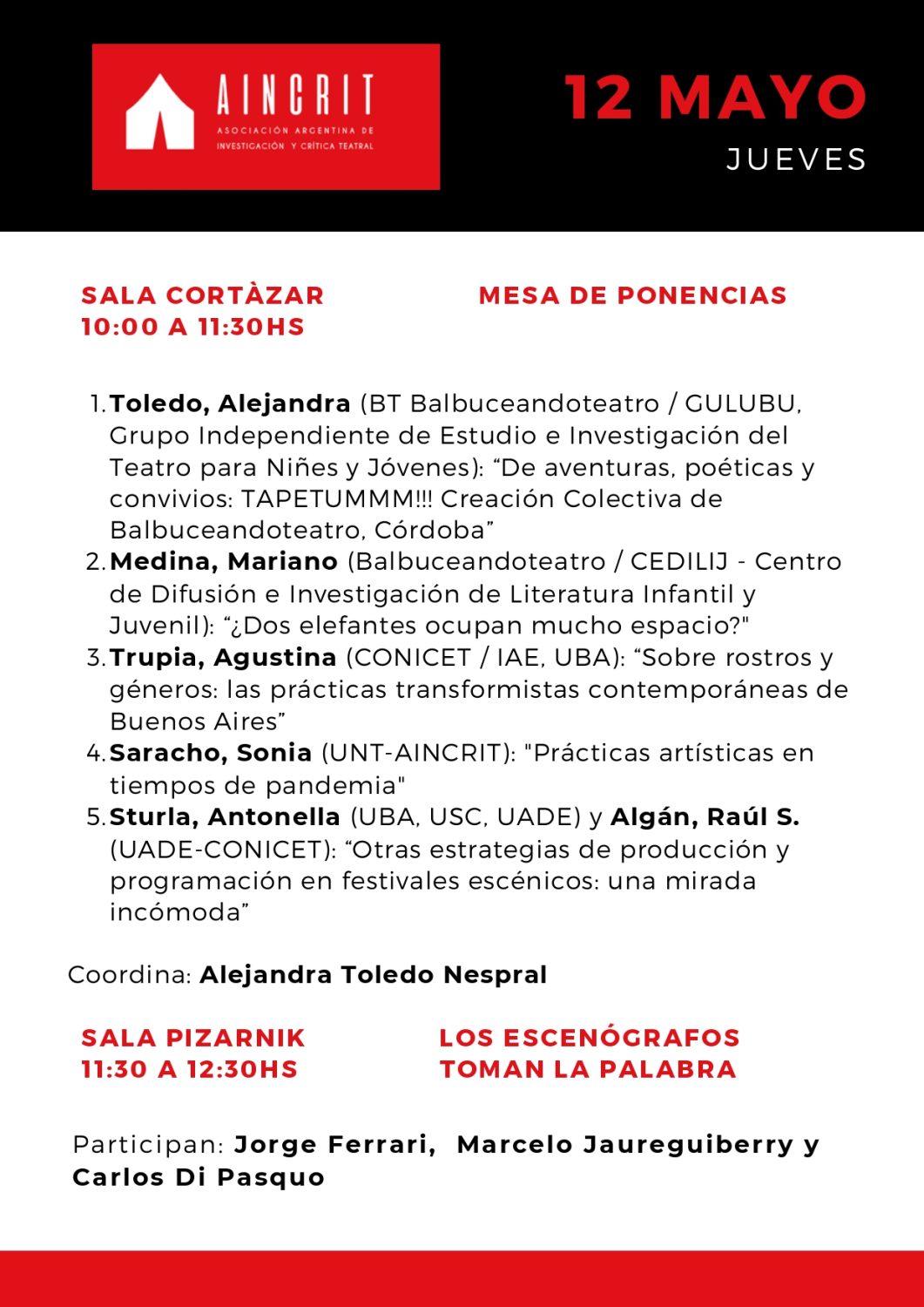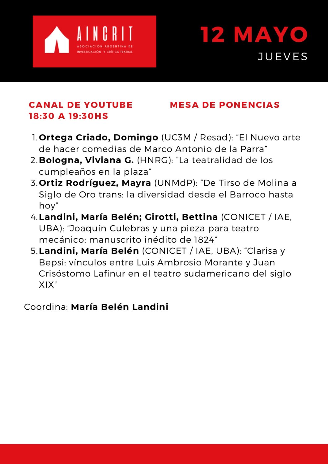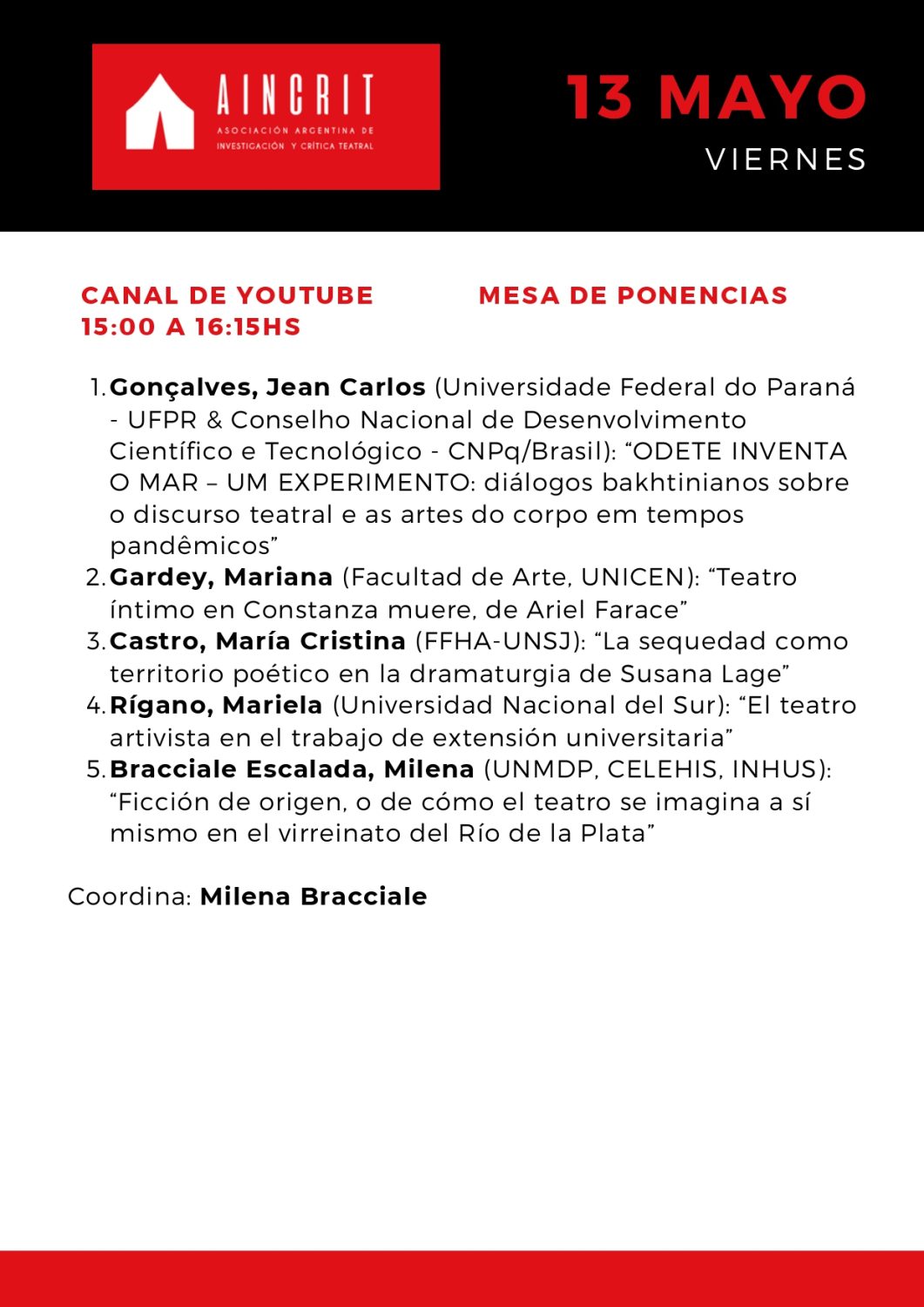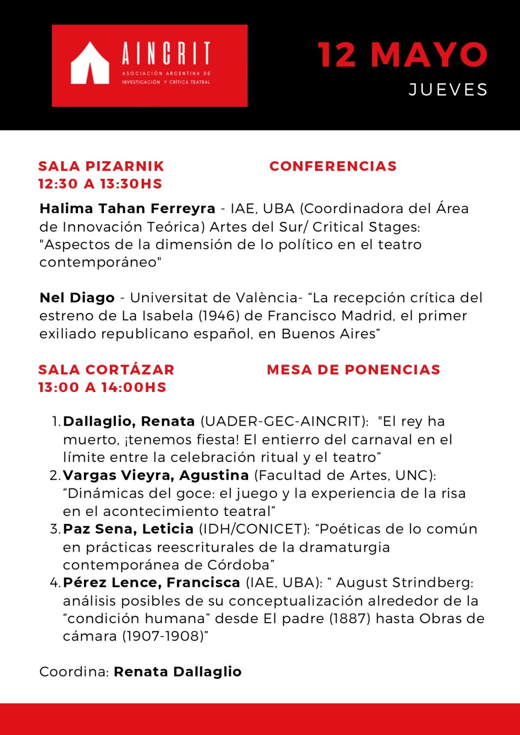 Compartimos el programa de las Jornadas de Investigación y crítica teatral que tendrán lugar del 11 al 14 de mayo en el marco de la Feria Internacional del Libro. La modalidad es híbrida (presencial y virtual)