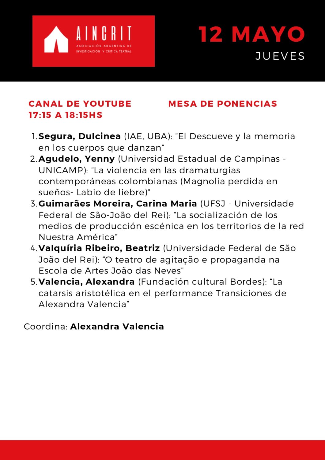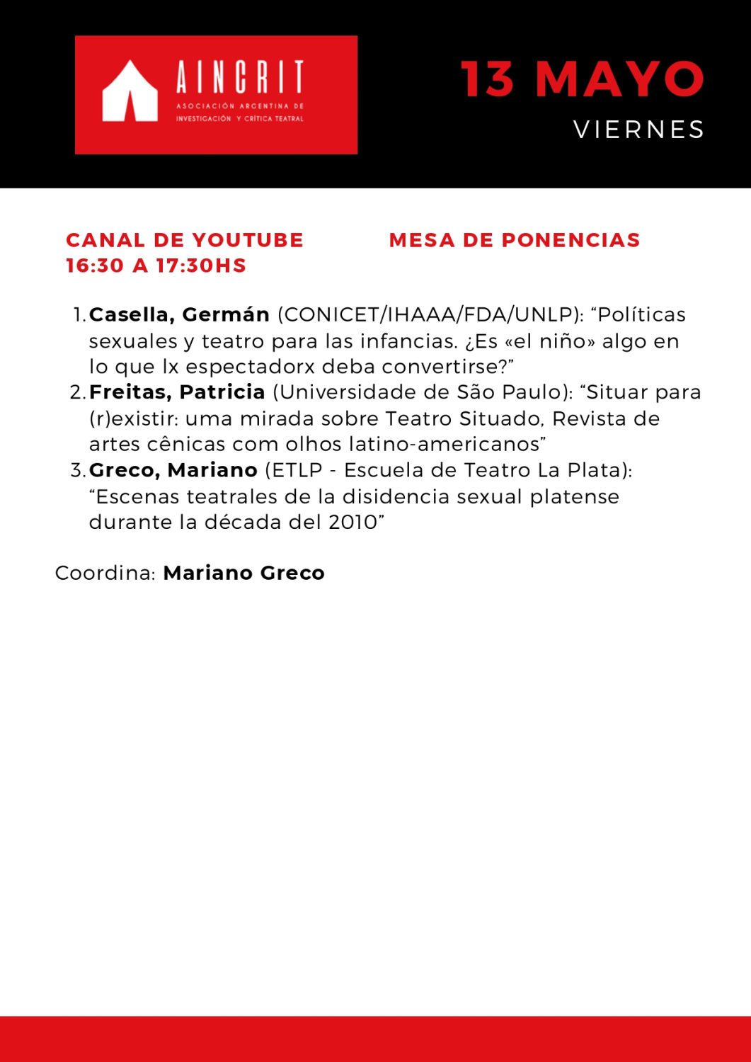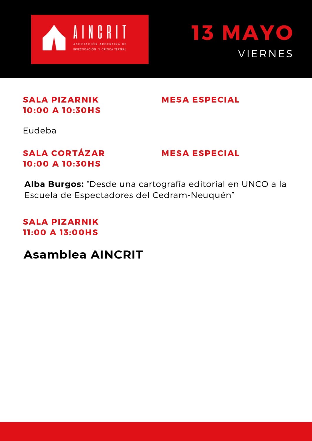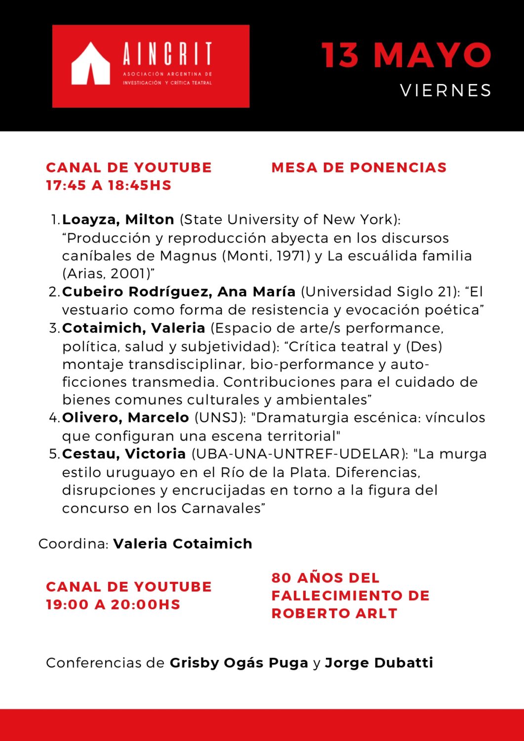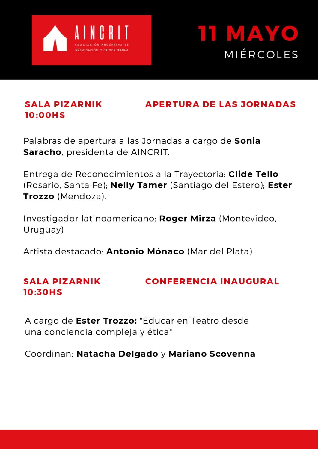 Compartimos el programa de las Jornadas de Investigación y crítica teatral que tendrán lugar del 11 al 14 de mayo en el marco de la Feria Internacional del Libro. La modalidad es híbrida (presencial y virtual)